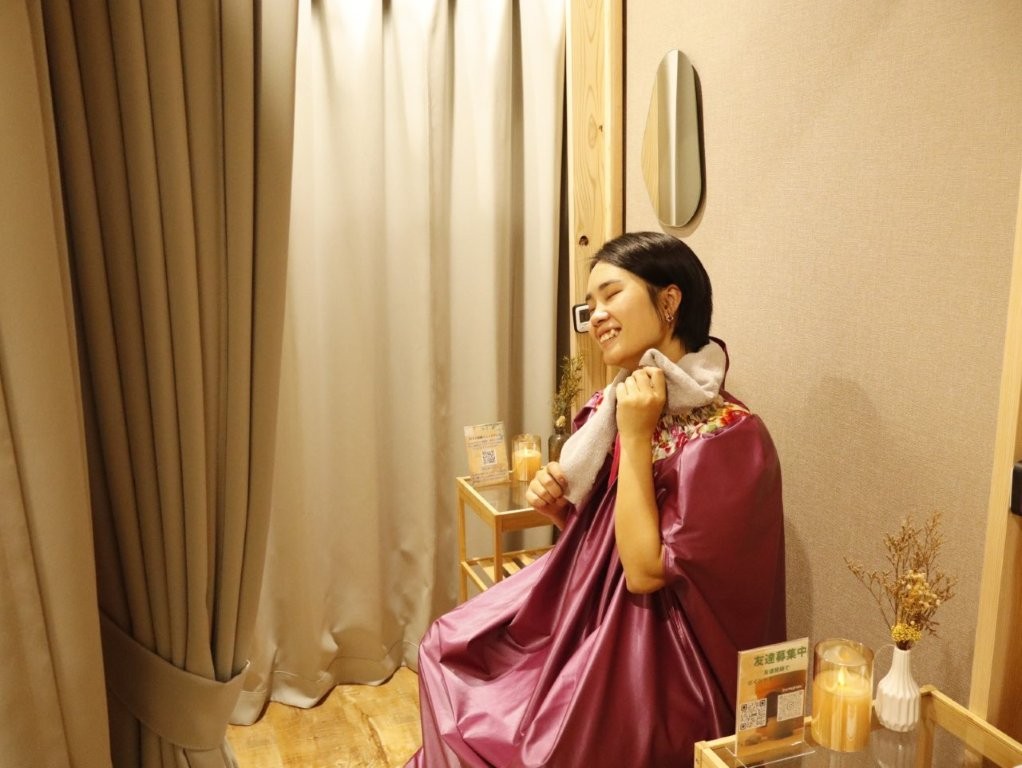 よもぎ蒸しで身体を深部から温め、巡りを整えた後にEMS体幹を整えてからフェイシャルを行うことで、全身バランスをサポート「温める・巡らせる・鍛える・整える」を一度に叶える、女性のためのトータルケアです。